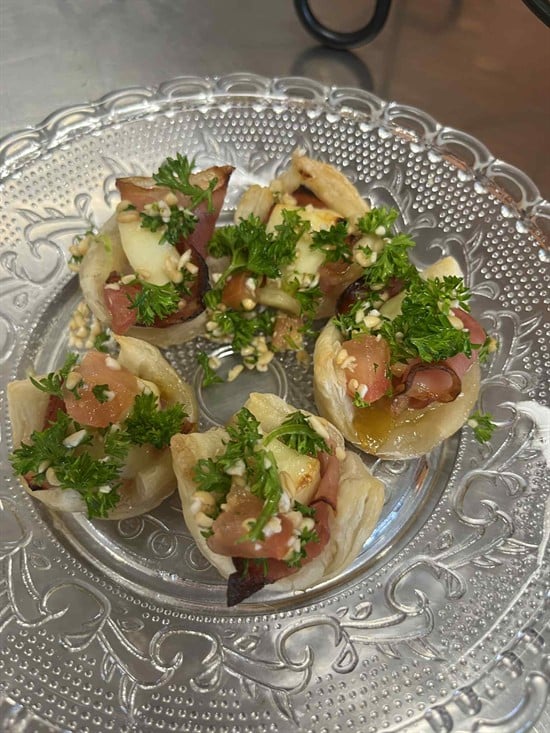 “The presentation was exceptional - each dish was plated with precision and colour, creating a vibrant, inviting table. The balance of textures, the thoughtful use of garnishes, and the Mediterranean-inspired styling made the menu feel both elegant and welcoming. It showed real attention to detail and elevated the dining experience. Every aspect absolutely blew me away. The beautiful, thoughtful and personalised words on the thank you cards, the speech at the beginning spoken so confidently, the service, food quality, atmosphere, and presentation. Every detail was considered - music, images on the tv screen, decorations, menu, thank yous, gifts, everything – just wow!"